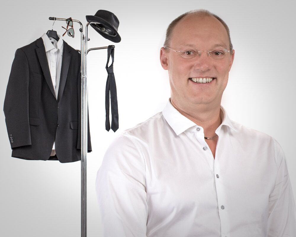 Hut, Sonnenbrille, Krawatte, Anzug, Schuhe - schwarz