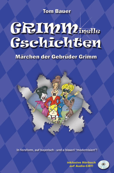 Grimminelle Gschichten | Die bekannten Märchen der Brüder Grimm, auf bayrisch, in Versform und a bisserl modernisiert. Und Tom Bauer stellt sich in seinem Erstlingswerk durchaus auch Fragen, die die Brüder Grimm bis dato nicht beantworten konnten: Warum irren Hänsel und Gretel drei Tage planlos durch den Wald, finden aber den kürzesten Weg nach Hause zurück, nachdem die Hexe verbrannt wurde? Warum kommt am Tag genau nach 100 Jahren ein Prinz zu Dornröschens Schloss? Und wie um Himmels Willen kommt er dann auch noch auf diese absurde Idee, eine total verstaubte, seit Jahrzehnten herumliegende Frau zu küssen?!? Illustriert wurde dieses Buch übrigens von Gründungsmitglied Achim Wimmer. |